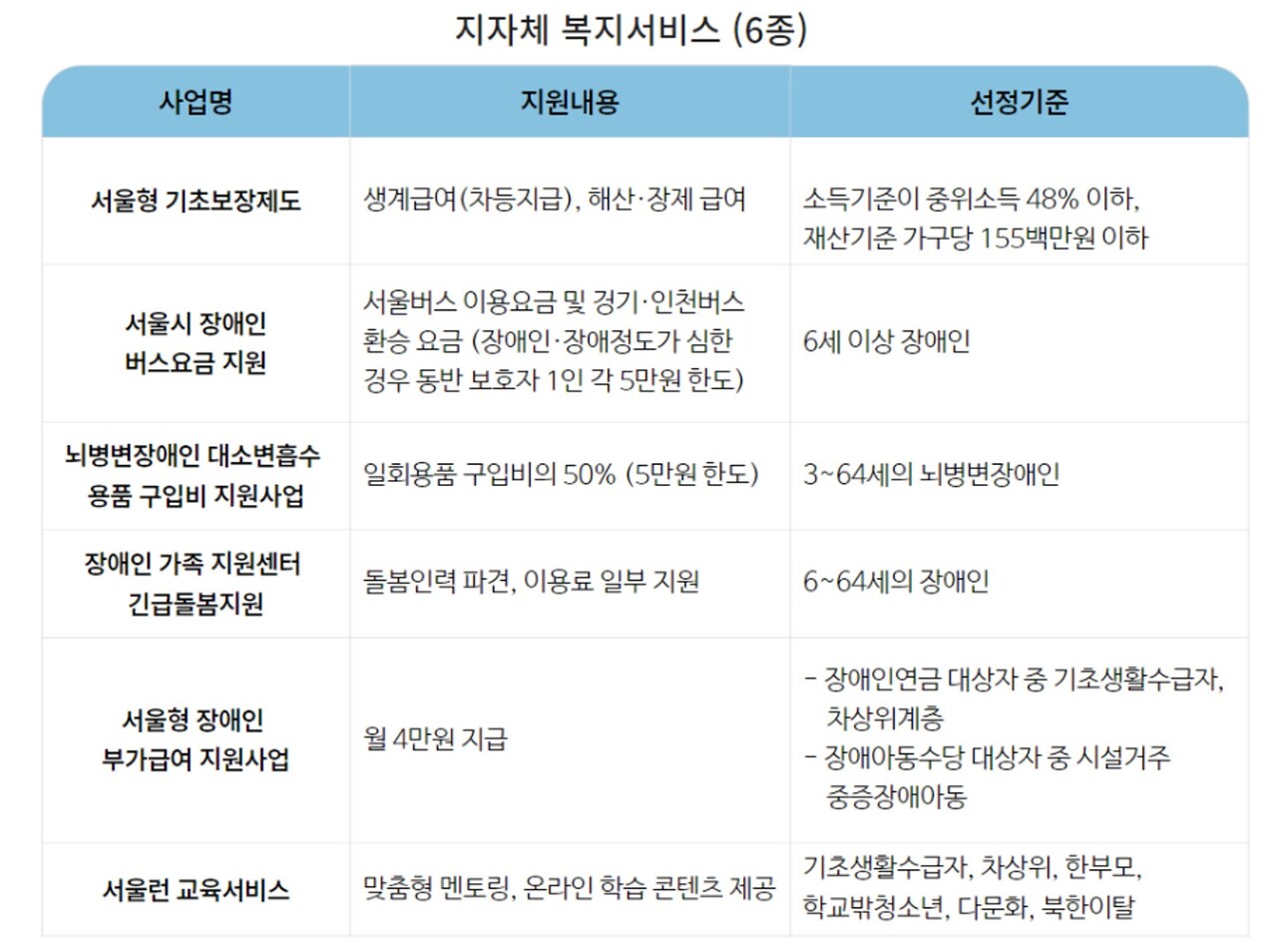 - 복지 지원 대상자 여부를 확인할 수 있는 기능이 포함되어 있습니다.