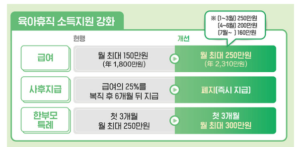 1. 육아휴직 급여 인상 및 사후지급금 폐지